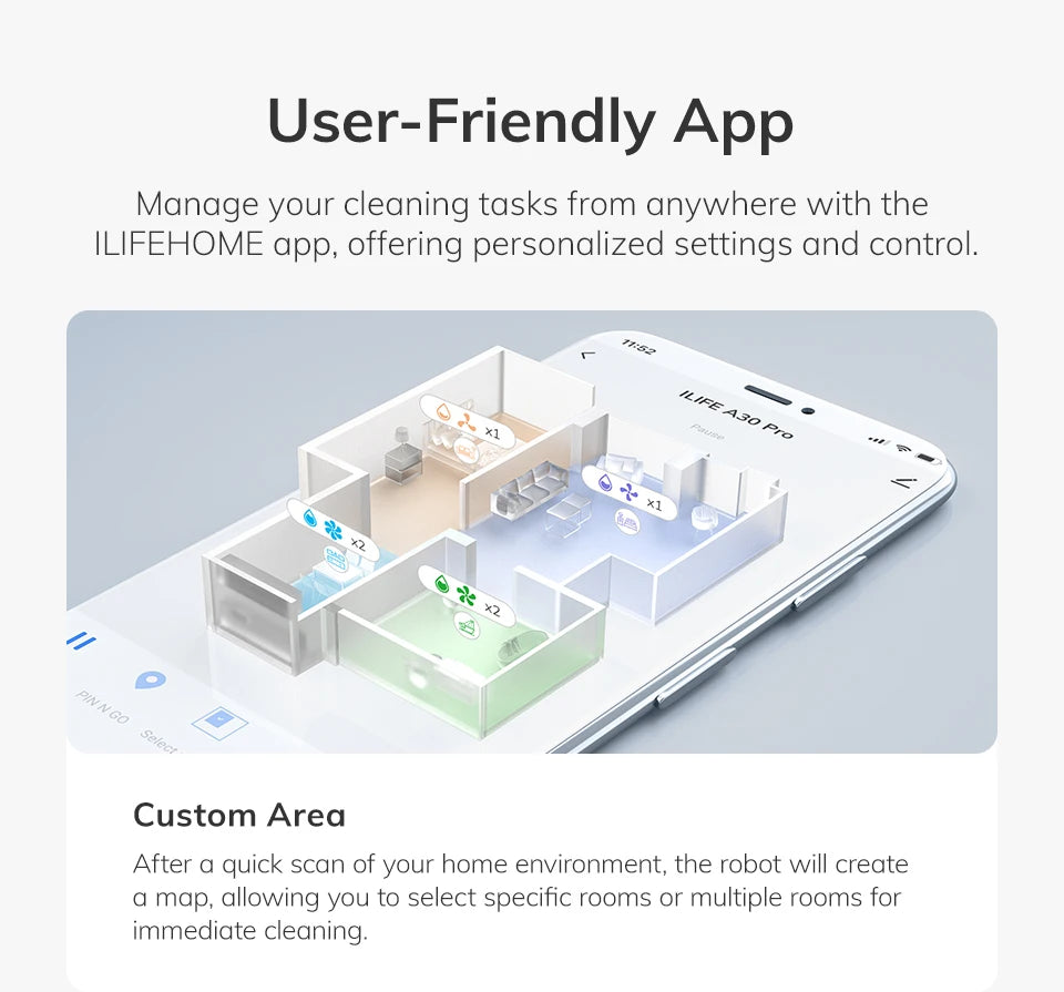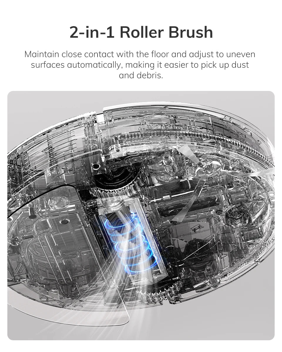 Gracias a sus sensores integrados, evita obstáculos y caídas, garantizando una limpieza segura y continua. Su diseño compacto le permite pasar debajo de muebles y camas, mientras que su funcionamiento silencioso lo hace perfecto para el uso diario. Una solución práctica y moderna para mantener tu hogar limpio con el mínimo esfuerzo.